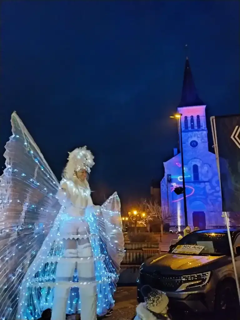 Char sonorisé lumineux avec personnage au sol