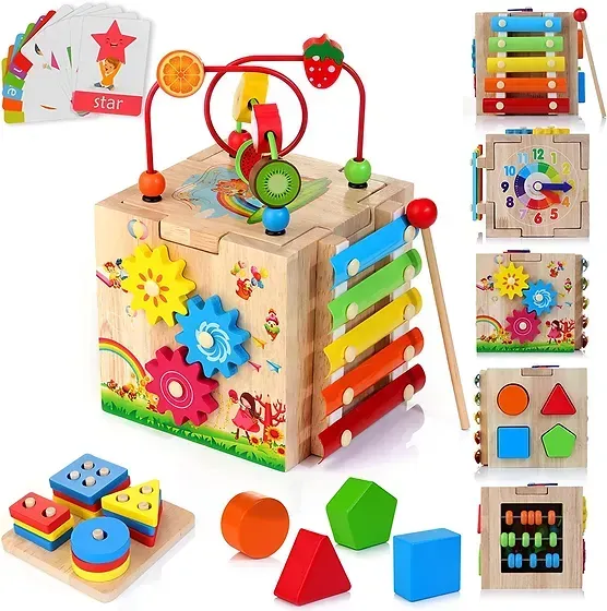 Cette station de jeux pour enfants posséde 5 Faces sur lesquelles les petits pourront jouer et s'adonner à plusieurs activités.