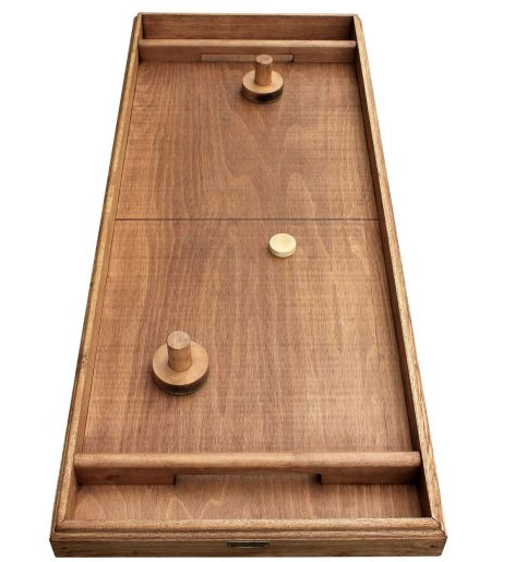 La Table à Glisser, une réinterprétation en bois de l'icône du bowling, le air hockey. Offrant une expérience conviviale, elle conserve le même principe : chaque joueur tente de faire glisser un palet dans le but adverse en utilisant sa poignée. La première personne à marquer 5 points remporte la partie. Entièrement conçue en bois, cette version garantit une performance sans électronique ni risque de panne. Avec une surface ultra-glissante et des poignées résistantes, cette table à glisser promet des heures de plaisir.