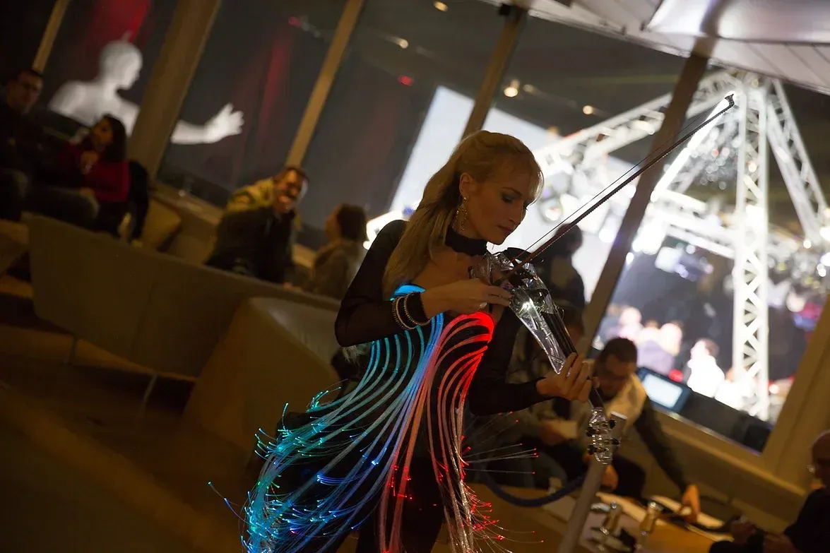 Habillée de somptueuses robes lumineuses en fibre optique ou LED, Angie allie art et technologie avec ses tenues "connectées". Pour chaque événement, elle crée un show sur mesure, avec la possibilité d’afficher le logo de votre entreprise directement sur sa robe, offrant ainsi une expérience visuelle captivante. Cette fusion unique de créativité et d’innovation est conçue pour émerveiller et ravir vos clients, en faisant de votre événement un moment inoubliable.